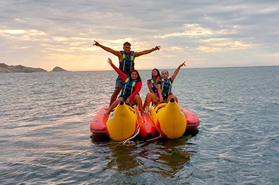 - 12:15 pm Disfrutaremos de la playa y/o de un emocionante paseo por la bahía en el banano acuático (no incluido).